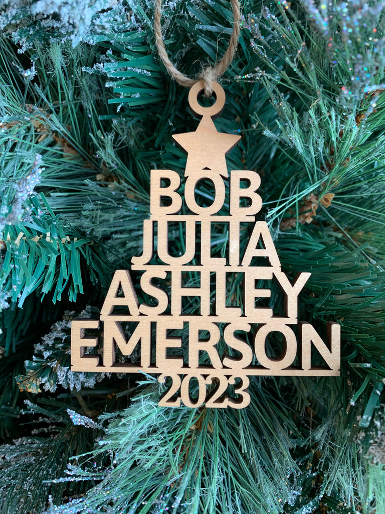 This ornament is made out of 1/4 inch maple plywood and will vary in size depending on how many names.