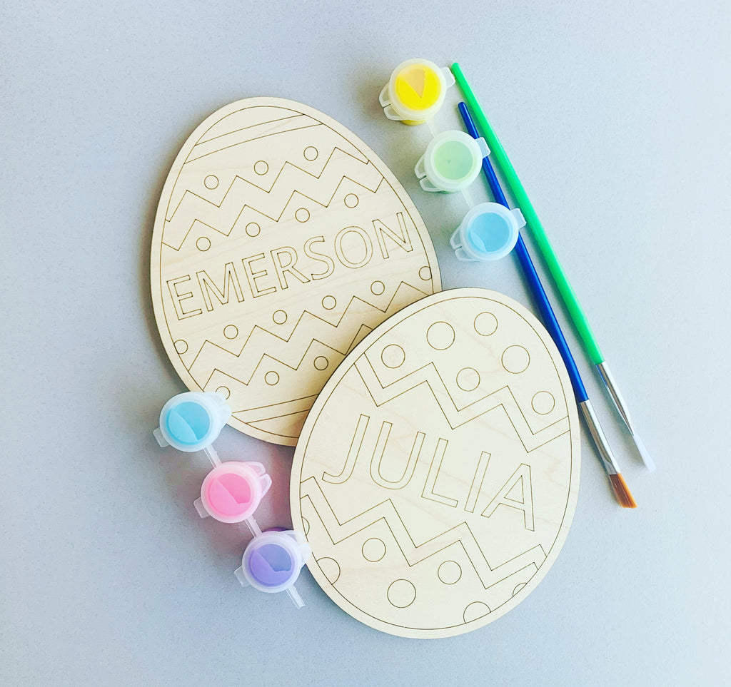 This is such a fun craft for little kids. This egg measure around 5.5 inches, and includes either purple, pink and blue paint or green, yellow and blue.